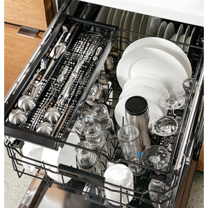 Broyeur d'aliments durs PiranhaMC avec filtre amovible.Affichage du compte à rebours à 3 chiffres avec mise en marche différée de 1 à 12 heures.Système à 102 JETS DE NETTOYAGE.Jets pour le lavage des bouteilles.Bras gicleur à lame quadruple et inversion du sens de marche.Protection du planche